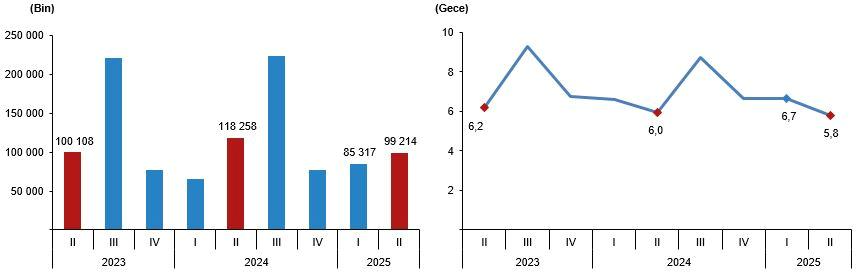 Geceleme sayısı, II. Çeyrek, 2025 Ortalama geceleme sayısı, II. Çeyrek, 2025