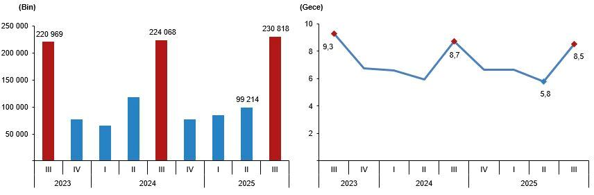 Geceleme sayısı, III. Çeyrek, 2025 Ortalama geceleme sayısı, III. Çeyrek, 2025
