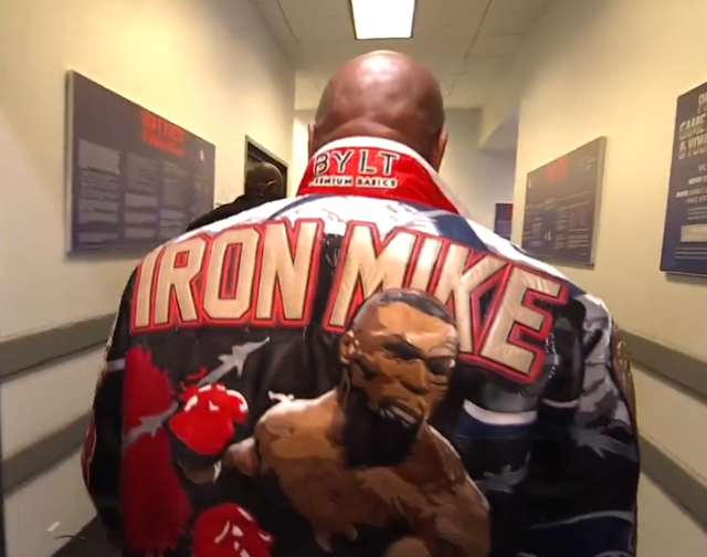 Mike Tyson, tarihi boks maçı için TSİ 05.30 sularında müsabakanın gerçekleştirileceği Teksas eyaletine bağlı Arlington şehrindeki 80 bin kişilik ATT Stadı’na geldi. Tyson’un giydiği ceketin üzerinde “Iron Mike (Demir Mike) yazması dikkat çekti. Efsane boksör’ün ceketi, tüm dünyanın gözünün kulağının çevrildiği müsabaka öncesinde gündem oldu.
