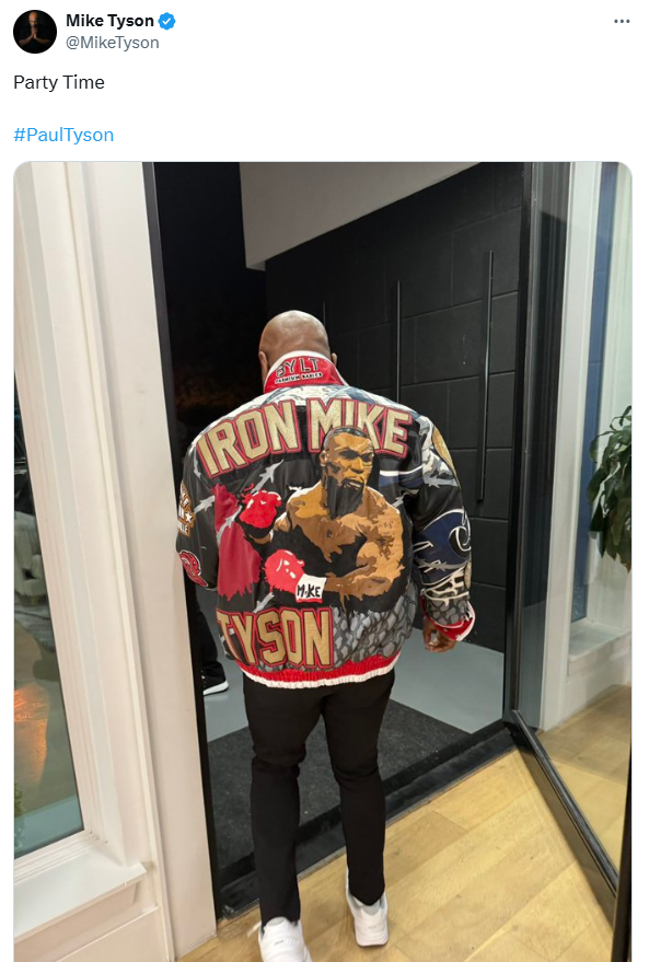 Mike Tyson, tarihi maçın yapılacağı ATT Stadı’na giriş yapmadan önce bir paylaşım yaptı. Gündem olan ceketiyle arkadan çekilmiş fotoğrafını paylaşan efsane boksör “Party Time (Parti zamanı)” notunu düştü.