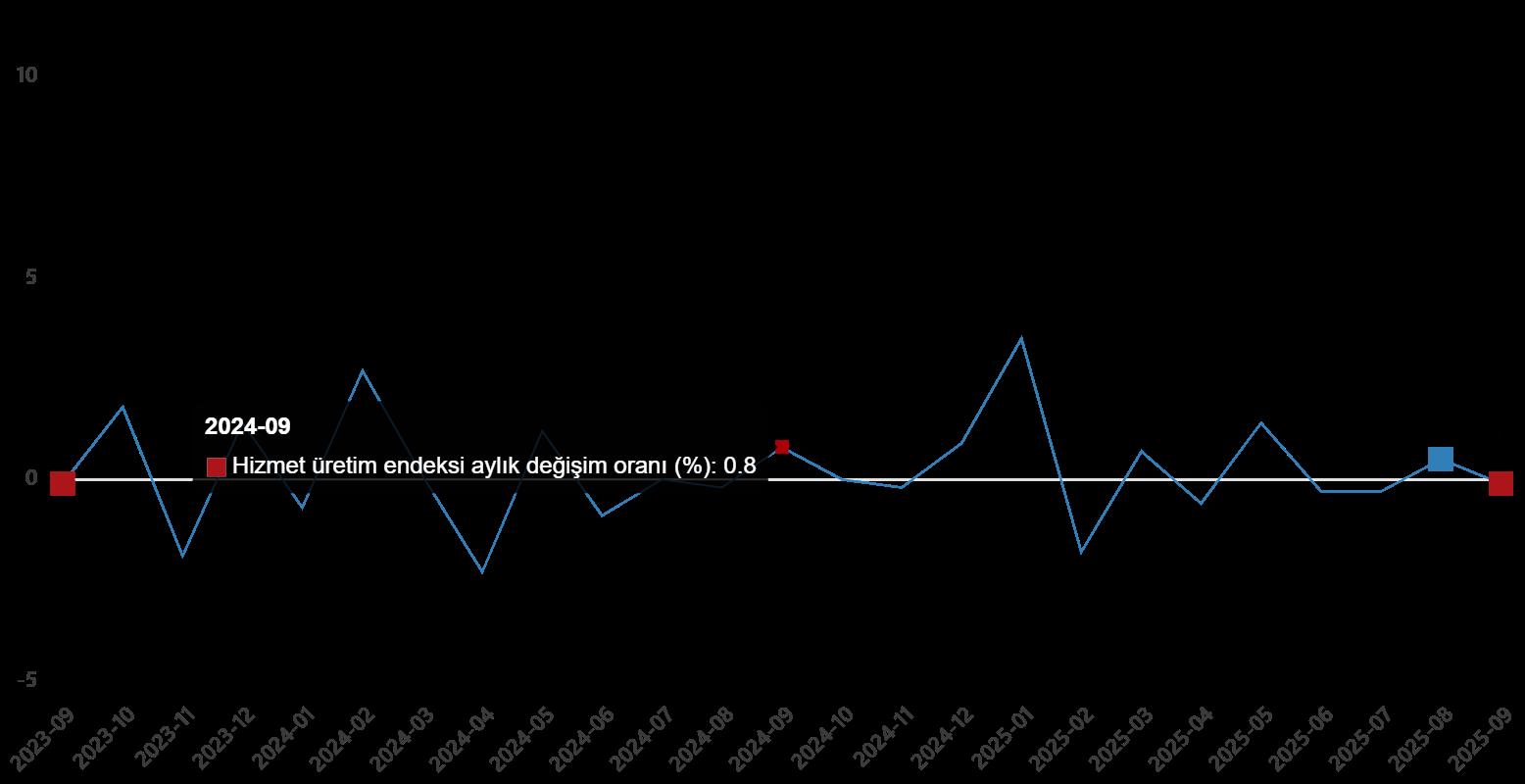Hizmet üretim endeksi aylık değişim oranı (%), Eylül 2025