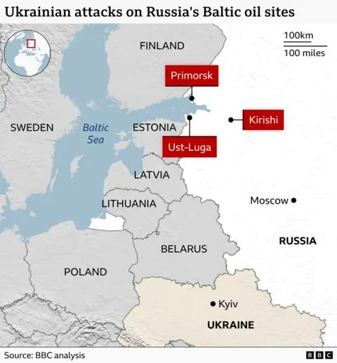 BBC Verify has also confirmed several videos showing the aftermath of attacks on all three facilities in the past week, including clips showing massive smoke plumes rising into the sky from Primorsk.