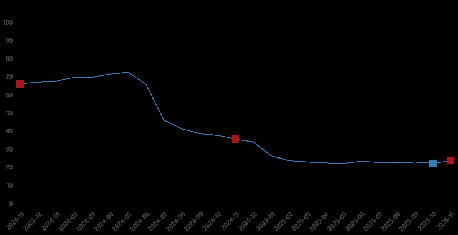 İnşaat maliyet endeksi yıllık değişim oranları(%), Kasım 2025