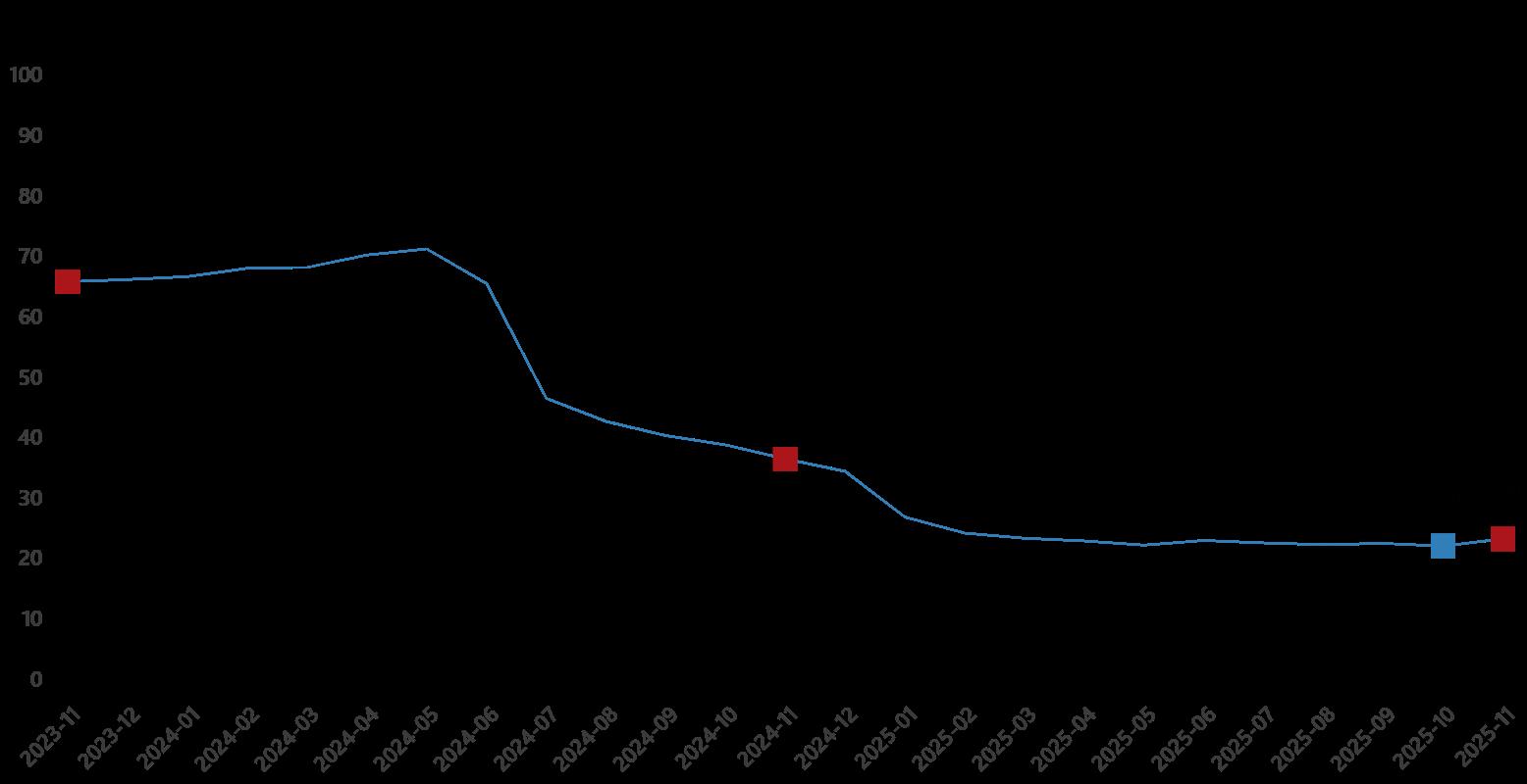 İnşaat maliyet endeksi yıllık değişim oranı(%), Kasım 2025