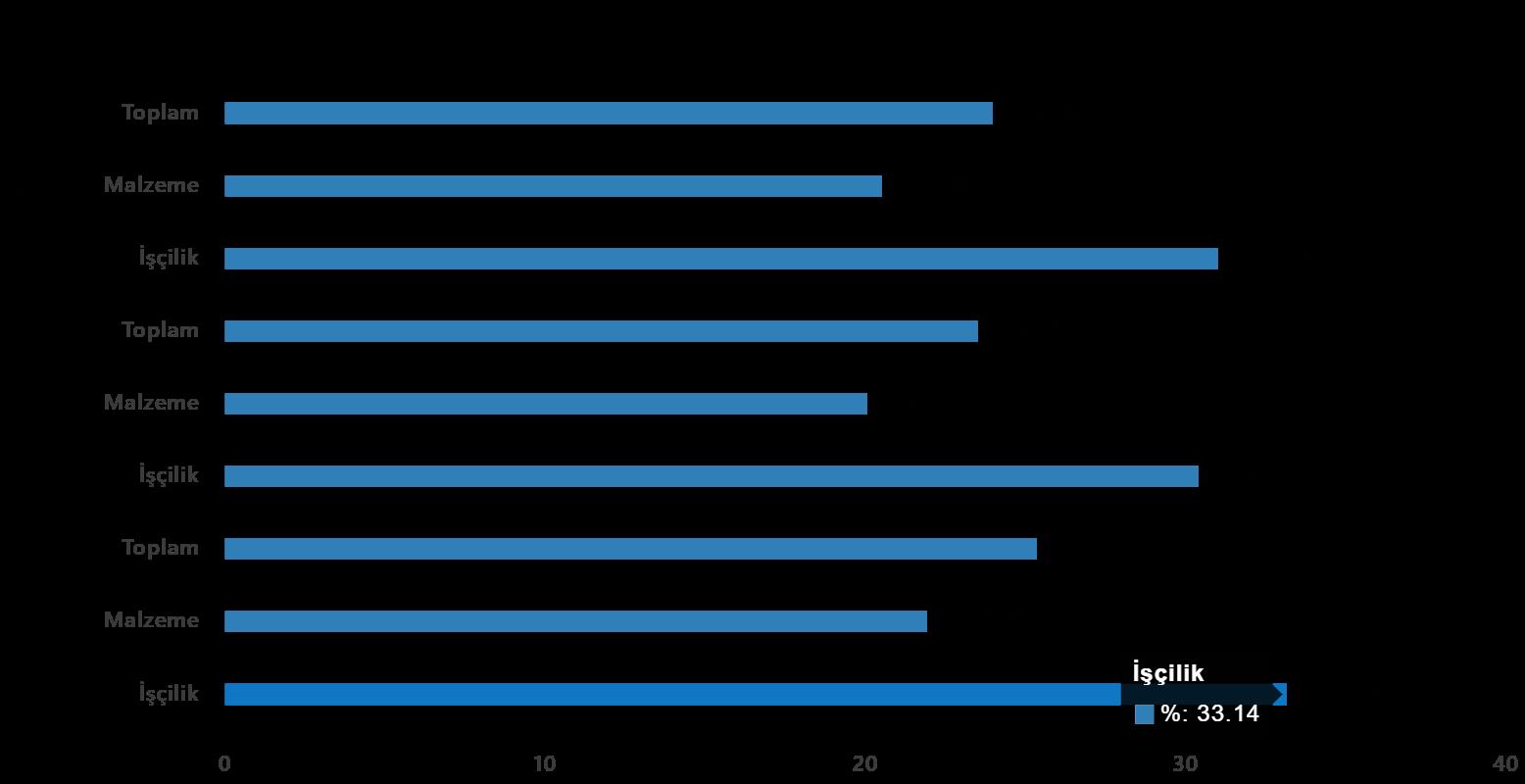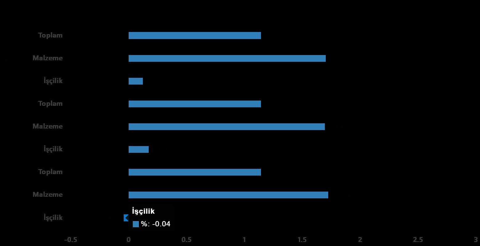 Bina inşaatı maliyet endeksi, bir evvelki aya nazaran %1,14 arttı, bir evvelki yılın tıpkı ayına nazaran %23,50 arttı. Bir evvelki aya nazaran materyal endeksi %1,69 arttı, personellik endeksi %0,17 arttı. Ayrıyeten bir evvelki yılın tıpkı ayına nazaran gereç endeksi %20,03 arttı, personellik endeksi %30,37 arttı.