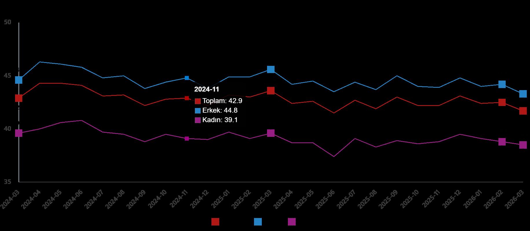 Mevsim ve takvim tesirlerinden arındırılmış işgücüne ait tamamlayıcı göstergeler, Mart 2024 – Mart 2026