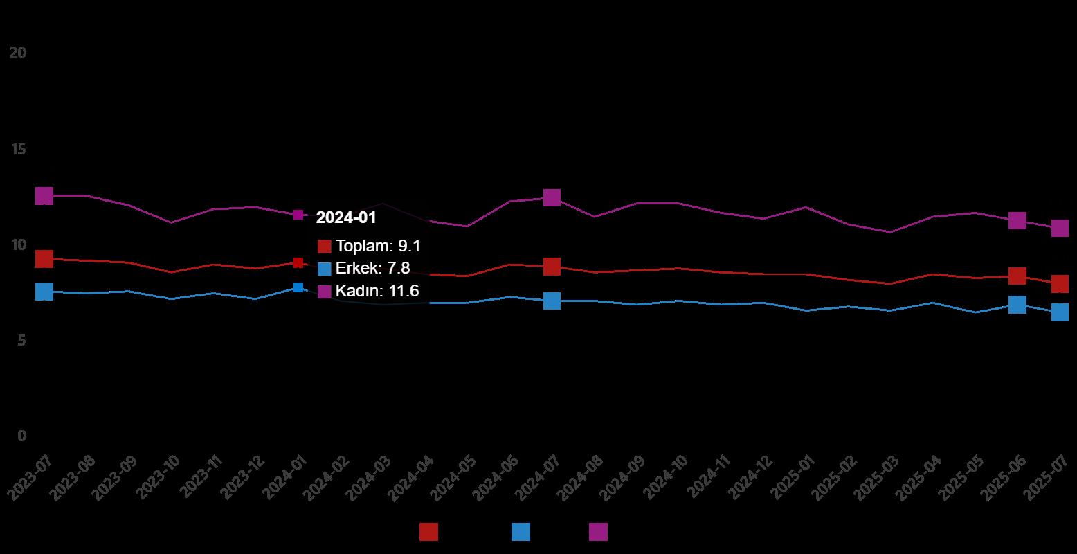 Mevsim tesirinden arındırılmış işsizlik oranı, Temmuz 2023 – Temmuz 2025