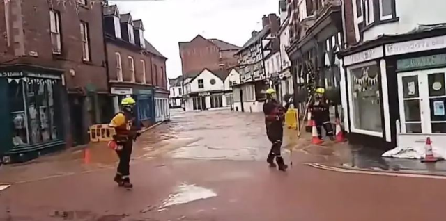 Bert Fırtınası’nın yarattığı sel suları, Worcestershire’daki Tenbury Wells kasabasını dün saniyeler içinde etkisi altına aldı. Yakındaki Kyre Deresi’nin taşması sonucu bir tuğla duvar yıkıldı ve sular ana caddeye doğru akmaya başladı. Kurtarma ekipleri, yükselen sulardan kaçmaya çalışan yerel halka “geri çekilin” diye bağırıyordu.