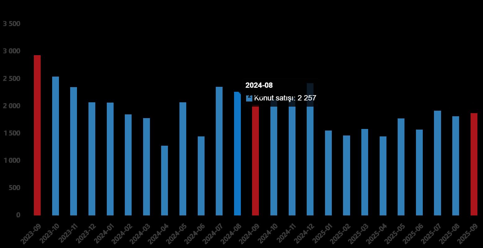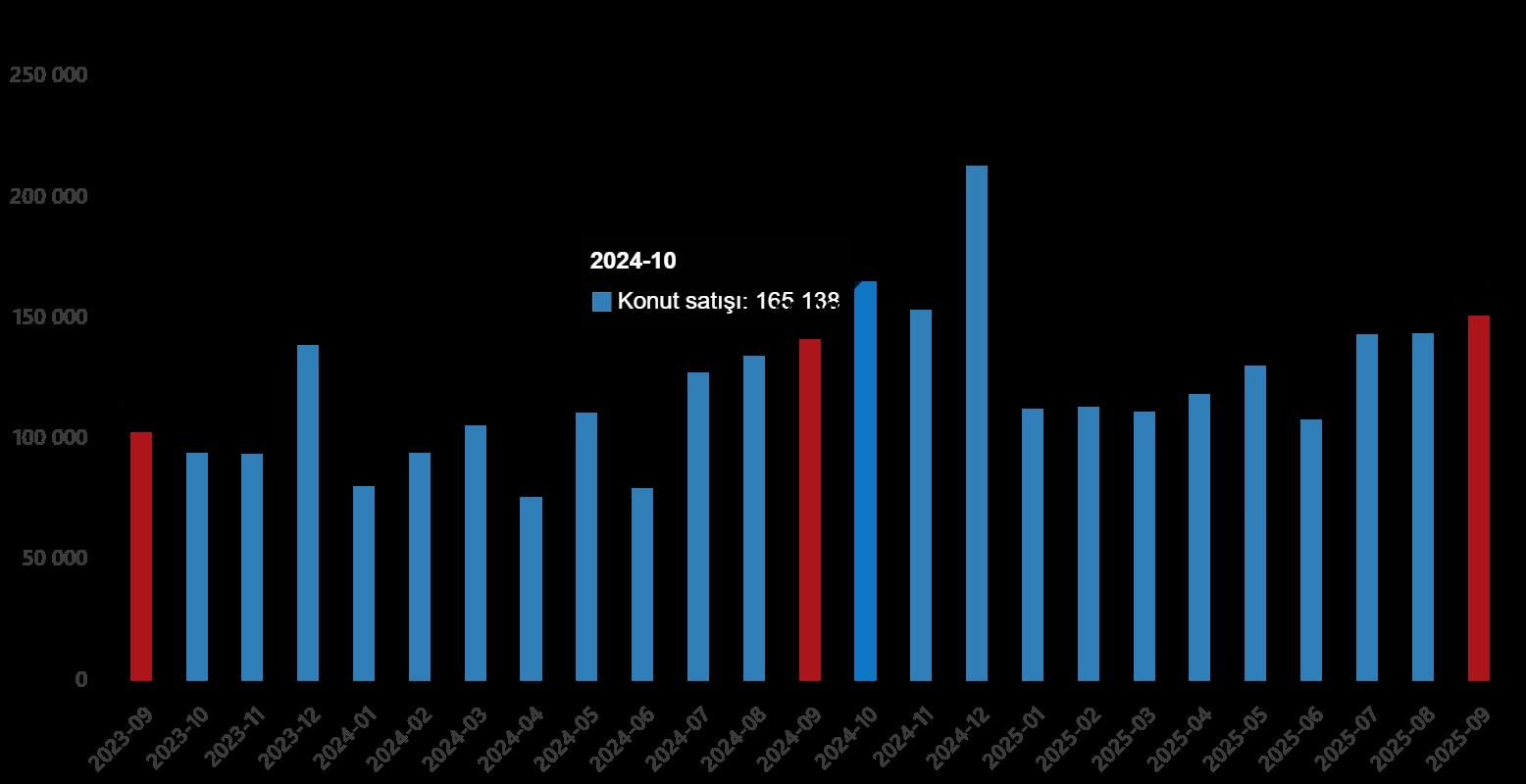 Türkiye genelinde konut satışları Eylül ayında bir evvelki yılın birebir ayına nazaran %6,9 oranında artarak 150 bin 657 oldu. Konut satış sayısının en fazla olduğu vilayetler sırasıyla 24 bin 119 ile İstanbul, 13 bin 417 ile Ankara ve 8 bin 544 ile İzmir olurken, en az olduğu vilayetler sırasıyla 70 ile Ardahan, 117 ile Bayburt ve 142 ile Tunceli olarak gerçekleşti.