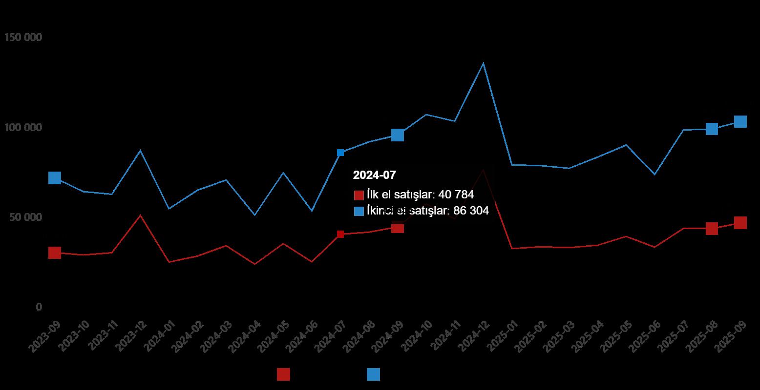 Türkiye genelinde birinci el konut satış sayısı Eylül ayında bir evvelki yılın tıpkı ayına nazaran %5,0 oranında artarak 47 bin 117 oldu. Toplam konut satışları içinde birinci el konut satışının hissesi %31,3 oldu. Birinci el konut satışları Ocak-Eylül periyodunda ise bir evvelki yılın tıpkı periyoduna nazaran %13,9 oranında artarak 342 bin 641 olarak gerçekleşti.