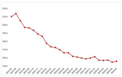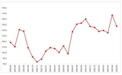 2023 Temmuz’dan bu yana düşüş eğiliminde olan ülke genelindeki gerçek konut fiyat endeksi, Mayıs 2025’te bir evvelki aya nazaran 1,1 puanlık artışla 155,9 düzeyine geldi.