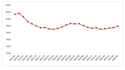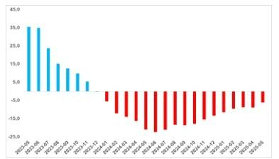 Yıllık gerçek fiyat değişimi, 2024’ün başından itibaren negatif kıymetlerdeki seyrini sürdürdü. Mayıs 2025’te yıllık fiyat değişimi oranı ülke genelinde yüzde -6,2 olarak gerçekleşti. Bununla birlikte, gerçek fiyatlardaki yıllık düşüşün Haziran 2024’ten itibaren ivme kaybettiği görüldü.