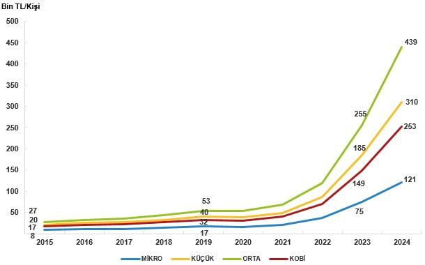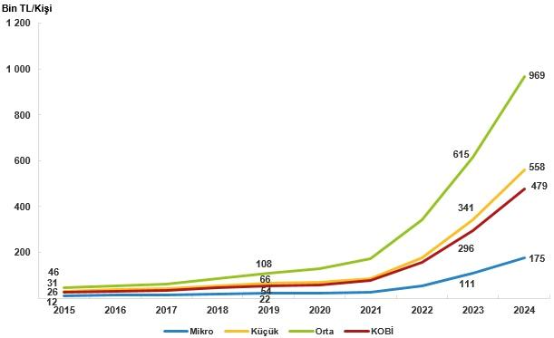 Orta ölçekli teşebbüslerde çalışan başına katma kıymet 2024 yılında 969 bin TL olarak gerçekleşti