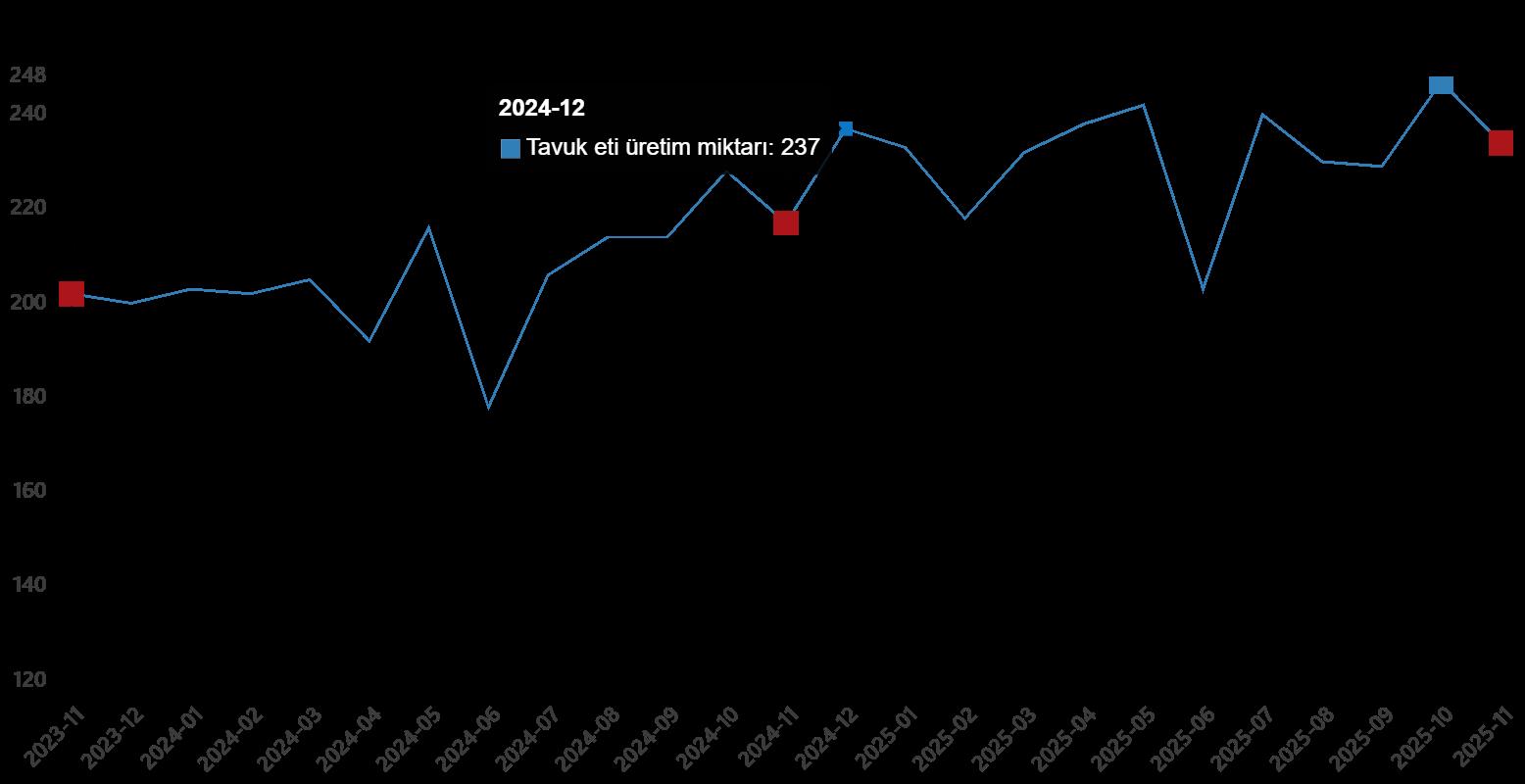 Tavuk eti üretim ölçüsü, Kasım 2025