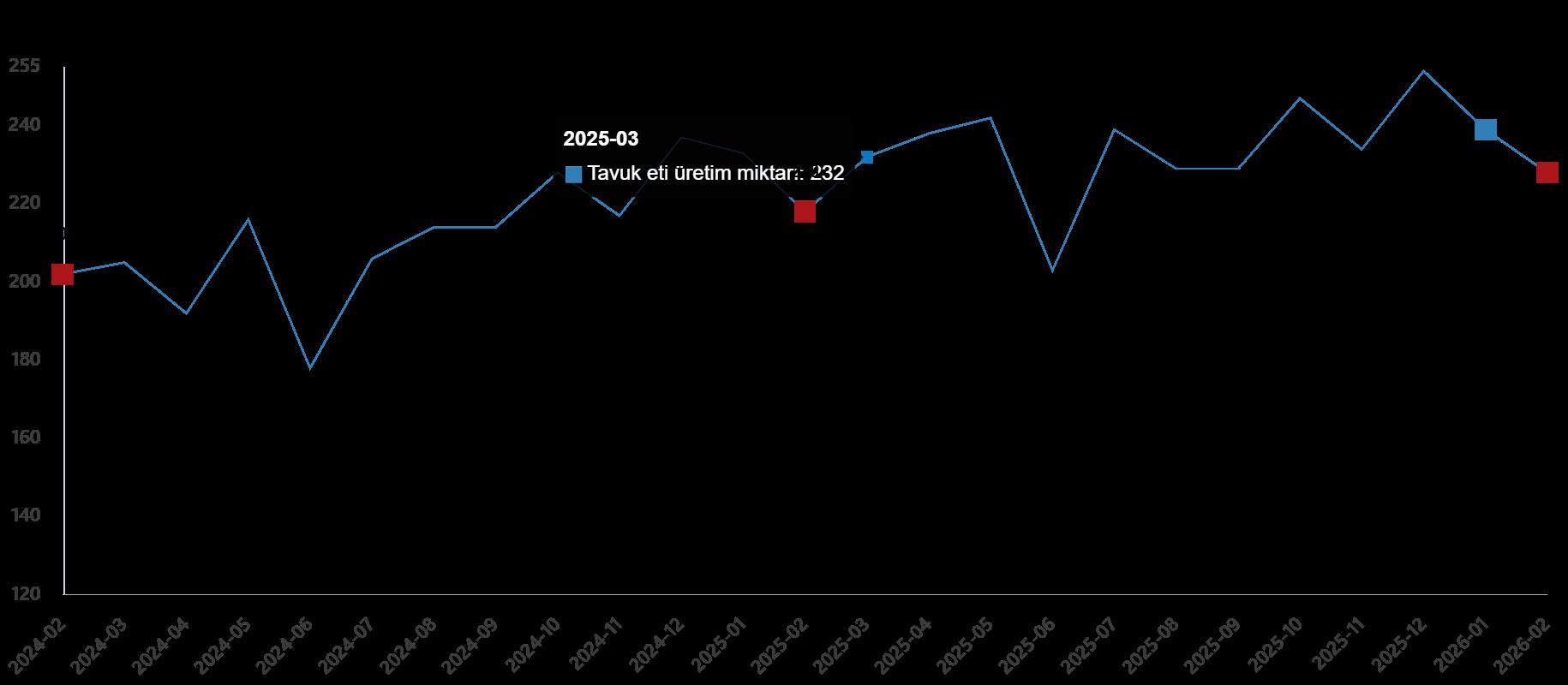 Tavuk eti üretim ölçüsü, Şubat 2026