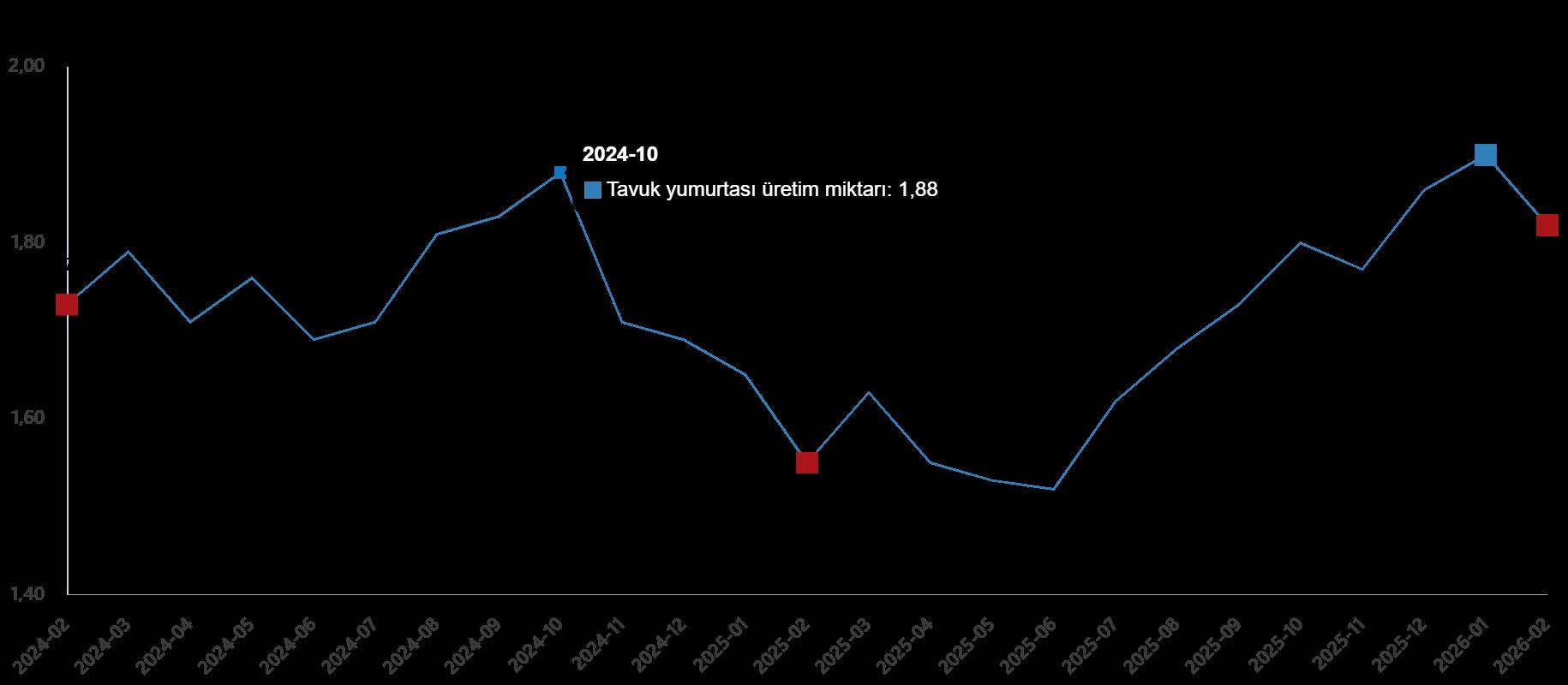 Tavuk yumurtası üretim ölçüsü, Şubat 2026