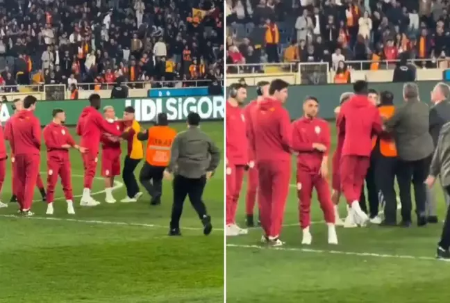 • Maç öncesi olay: Sahaya giren taraftar, Galatasaraylı futbolcuların arasına daldı