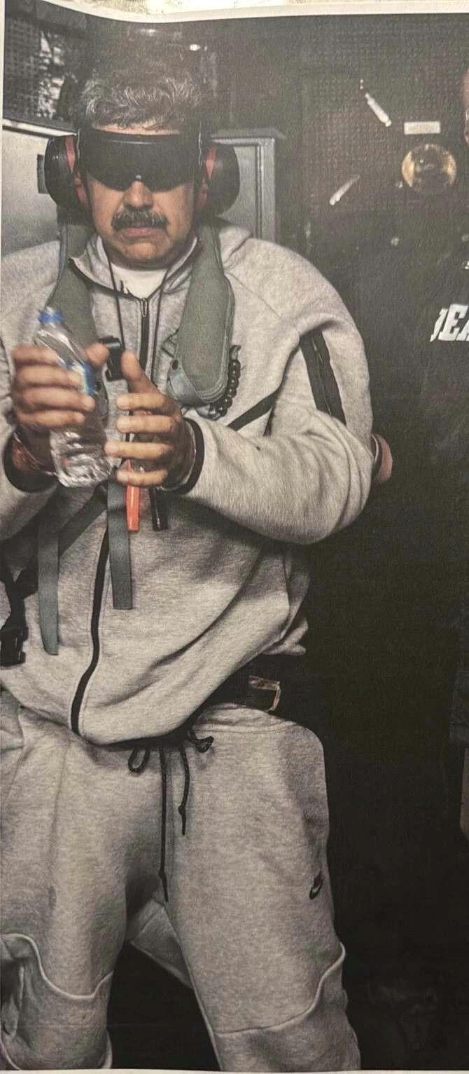 Gece yarısı sürüklenerek odalarından çıkarılan Maduro ve eşinden saatler sonra gelen ilk fotoğrafta, Maduro’nun Nike markalı gri bir eşofman takımı giydiği görüldü.