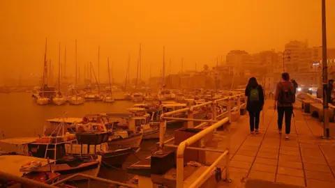 Storm Erminio has flooded streets, closed some schools and moored ferries. Meanwhile, some flights were disrupted on Crete on Wednesday after dust from an African storm filled the air, turning the sky red-orange.