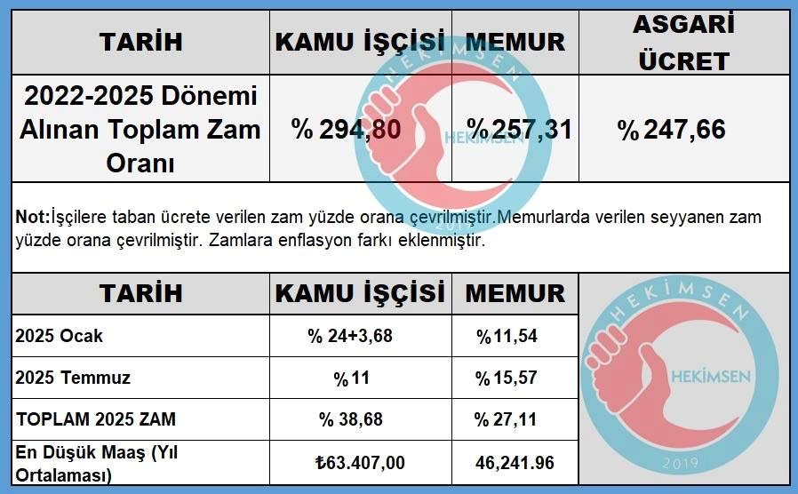 Hekimsen X sayfasında şu açıklamayı yaptı, “MEMURUN MAAŞI KAMU İŞÇİSİNDEN DÜŞÜK OLAMAZ! 2022-2025 döneminde kamu işçisine %294,80 zam yapılırken, memura sadece %257,31 zam yapıldı. 2025 dönemi ise toplam zam kamu işçisine %36,68 yapılırken memura sadece %27,11 zam yapıldı. 2025 yılı en düşük maaş: Kamu işçisi: 63.407 TL (Yıllık Ortalama) Memur: 46.241 TL Aynı devlet, aynı bütçeyle memura işçiden düşük maaş veremez! 657 Sayılı Devlet Memurları Kanunu (Madde 43) şuna işaret eder: “Devlet memurlarının aylıkları; yaptıkları hizmetin önemi, görevin gerektirdiği nitelikler, sorumluluk dereceleri ve hizmet sınıflarının özellikleri göz önünde tutularak tespit edilir.” Sadece memurun kamu işçisinden daha düşük maaş alamayacağı değil aynı zamanda işin niteliğine ve risklerine göre çalışan hekimlerin de maaş hiyerarşisi yeniden düzenlenmelidir. Memurların yaptığı görev, niteliği ve sorumluluğu yüksek olduğundan; devletin, kendi işçisine verdiği ücretten daha düşük ücret vermesi kamu hizmetini zedeler ve hukuka aykırıdır. Kamu Personeline İlişkin Toplu Sözleşmeler Toplu sözleşmelerde memurlara yapılan artışlarla kamu işçilerine yapılan zamlar arasında büyük uçurumlar oluşması durumunda, eşitlik ilkesine ve Anayasa’nın sosyal hukuk devleti ilkesine aykırılık durumu ortaya çıkmaktadır. #MemuraAdalet”