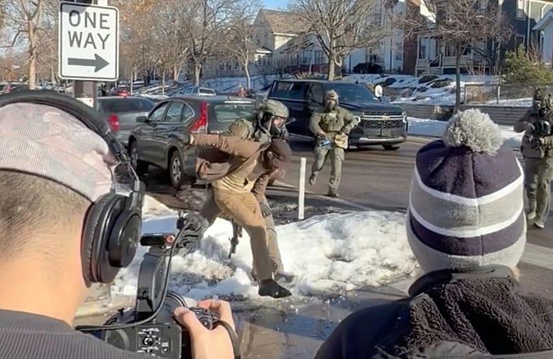 Some bystanders shout “just go!” at the officers before they set off tear gas canisters and eventually withdraw. As the officers drive away, a man approaches Pretti to ask if he is OK. Pretti confirms that he is, then turns to others and asks, “Are we all OK? Are we all safe?”