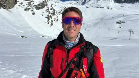He runs a metal ruler through 60cm (2ft) of the soft upper layer, before hitting the dense, compressed snow underneath. It’s invisible to the eye.