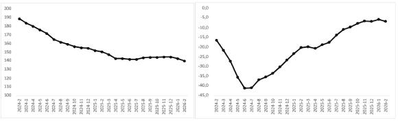 Şekil 1: Ortalama araba gerçek fiyatı (2020 Ocak=100) (Sol panel), ortalama araba gerçek fiyatının yıllık değişimi (%) (Sağ panel)
