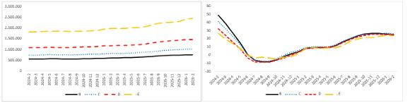 Şekil 2: Araç sınıfına nazaran ortalama araba fiyatı (TL) (Sol panel), araç sınıfına nazaran ortalama araba fiyatının yıllık değişimi (%) (Sağ panel)