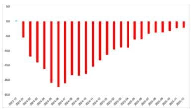 Şekil 1: Türkiye genelinde satılık konut gerçek fiyatlarının yıllık değişimi (%)