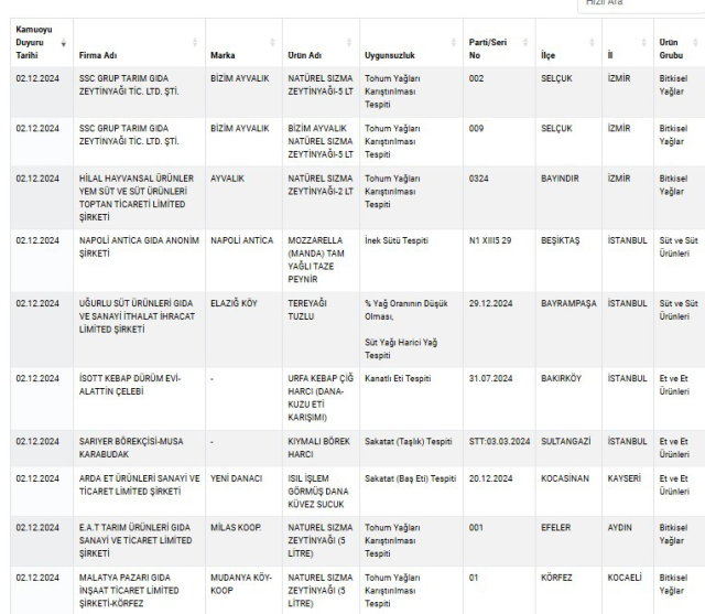 Tarım Ve Orman Bakanlığı, gıdada hile yapan firmalara yönelik denetimlerini sürdürüyor. Denetim sonuçlarında uygunsuzluk tespit edilen firmalar ve ürünleri de tek tek ifşa ediyor.