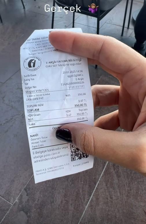 Işık’ın, “Şaka mı bu?” yazdığı market fişinde 3 erik için 350 TL ödediği görüldü.