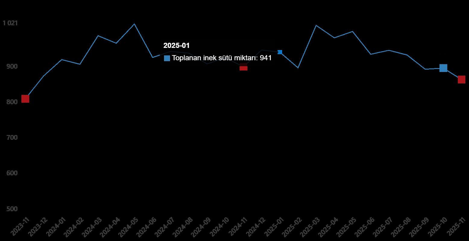 Toplanan inek sütü ölçüsü, Kasım 2025