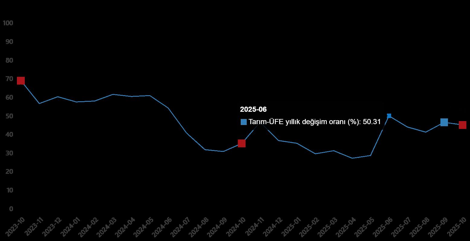 Tarım-ÜFE yıllık değişim oranı (%), Ekim 2025