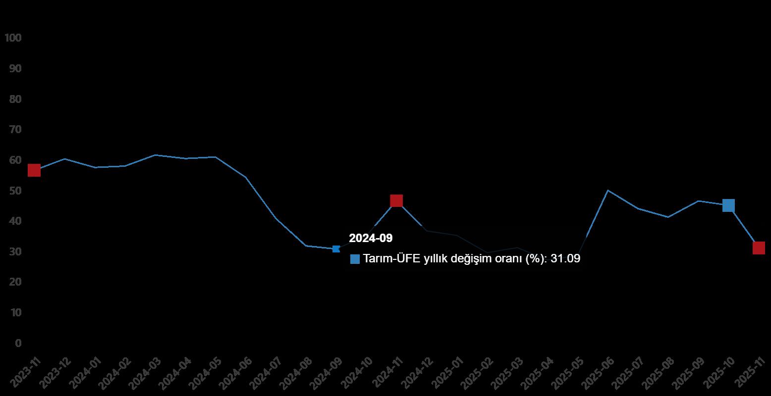 Tarım-ÜFE yıllık değişim oranı (%), Kasım 2025