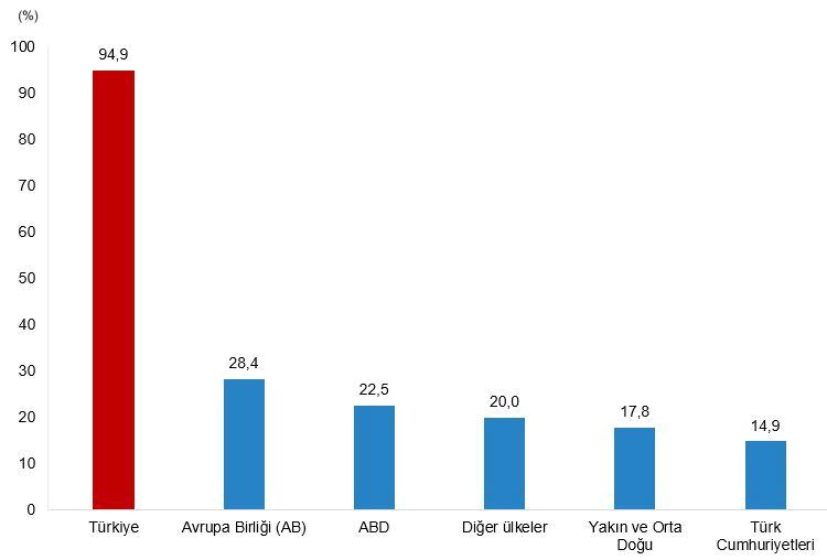 Teknogirişimlerin 2024 yılında İnternet (web siteleri ya da taşınabilir uygulamalar) aracılığı ile gerçekleştirdikleri e-satış oranları coğrafik bölge dağılımına nazaran incelendiğinde; e-satış yapan teknogirişimlerin %94,9’u yurt içine e-satış yaptığını söz etti. Bunu; %28,4 ile Avrupa Birliği (AB) ülkeleri, %22,5 ile Amerika Birleşik Devletleri (ABD), %20,0 ile öbür ülkeler, %17,8 ile Yakın ve Orta Doğu ülkeleri ve %14,9 ile Türk Cumhuriyetleri takip etti.