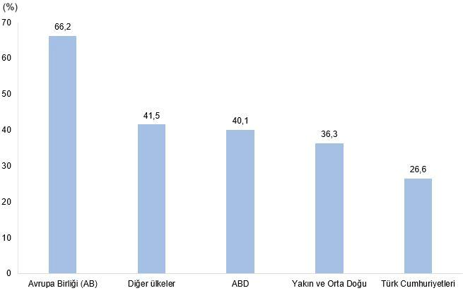 İhracat yapan teknogirişimlerin %66,2’si AB ülkelerine, %41,5’i öbür ülkelere, %40,1’i ABD’ye, %36,3’ü Yakın ve Orta Doğu ülkelerine ve %26,6’sı Türk Cumhuriyetleri’ne ihracat gerçekleştirdi.