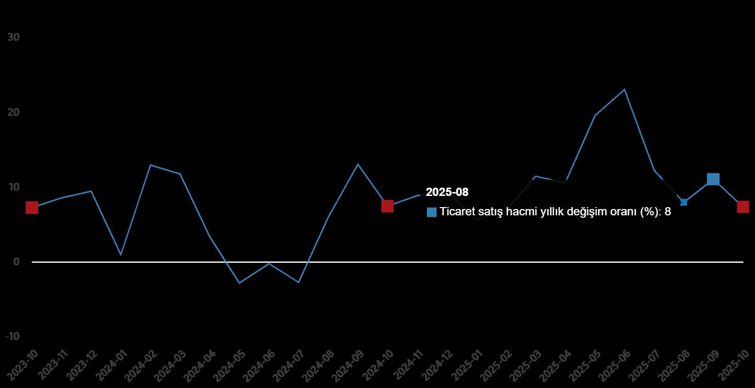 Ticaret satış hacmi yıllık değişim oranı (%), Ekim 2025