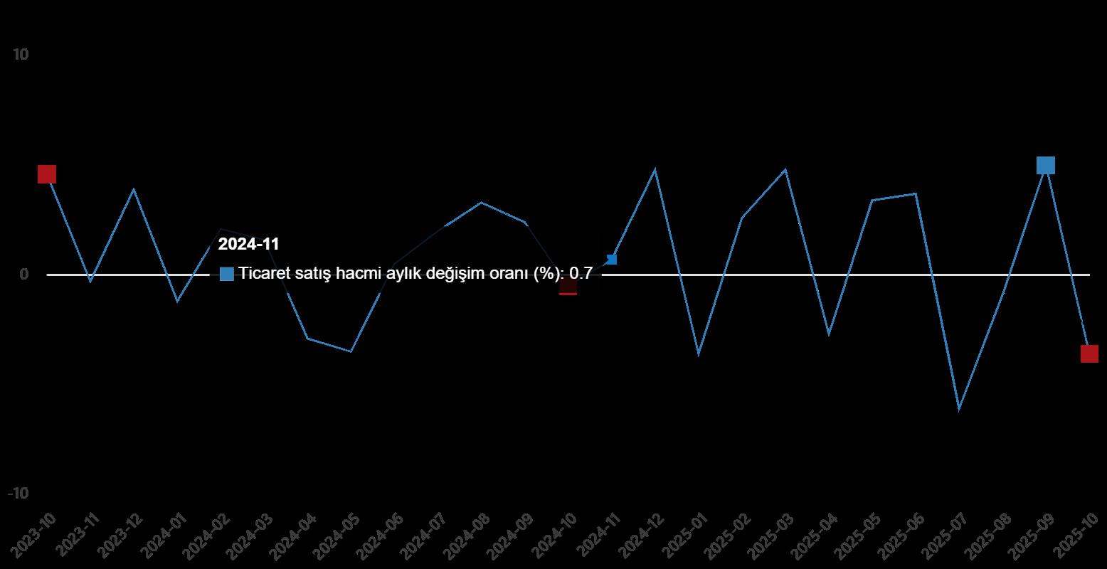 Ticaret satış hacmi aylık değişim oranı (%), Ekim 2025