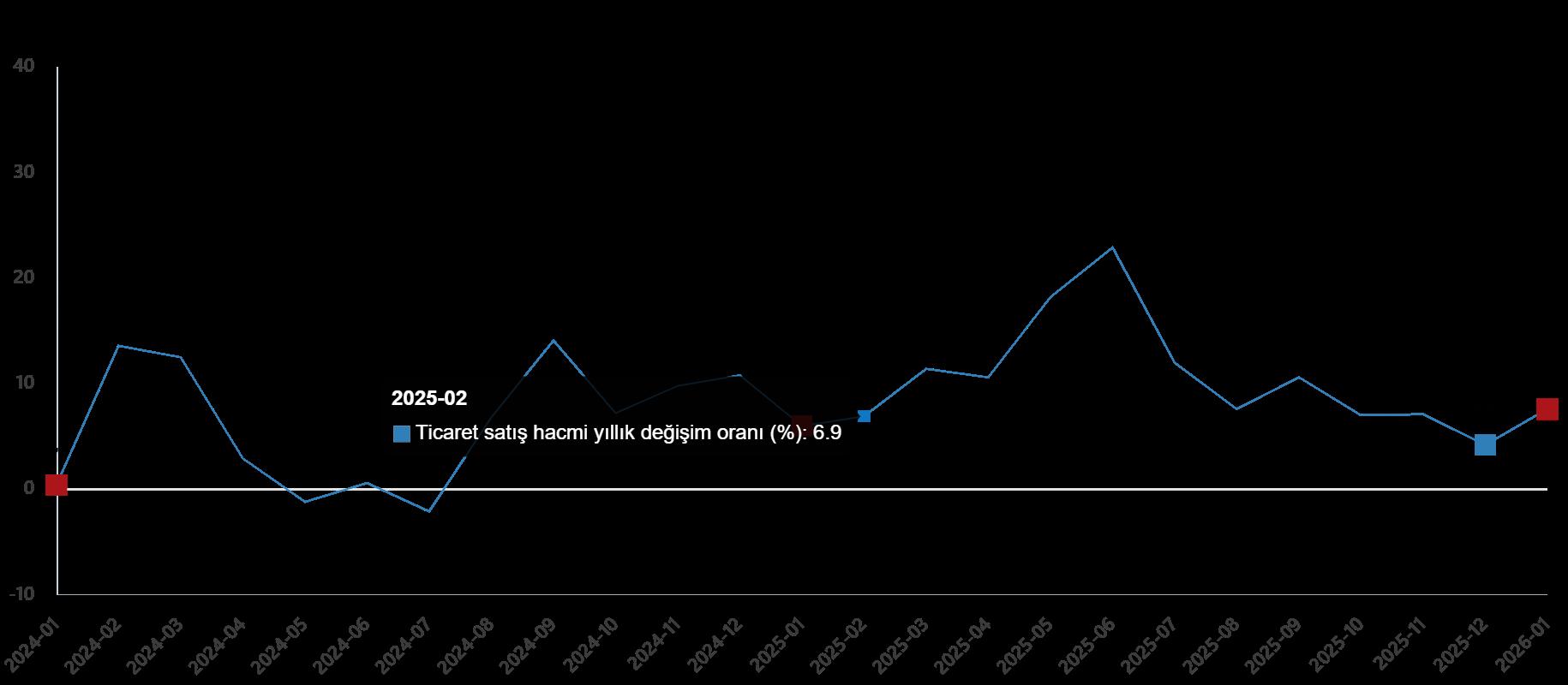 Ticaret satış hacmi yıllık değişim oranı (%), Ocak 2026