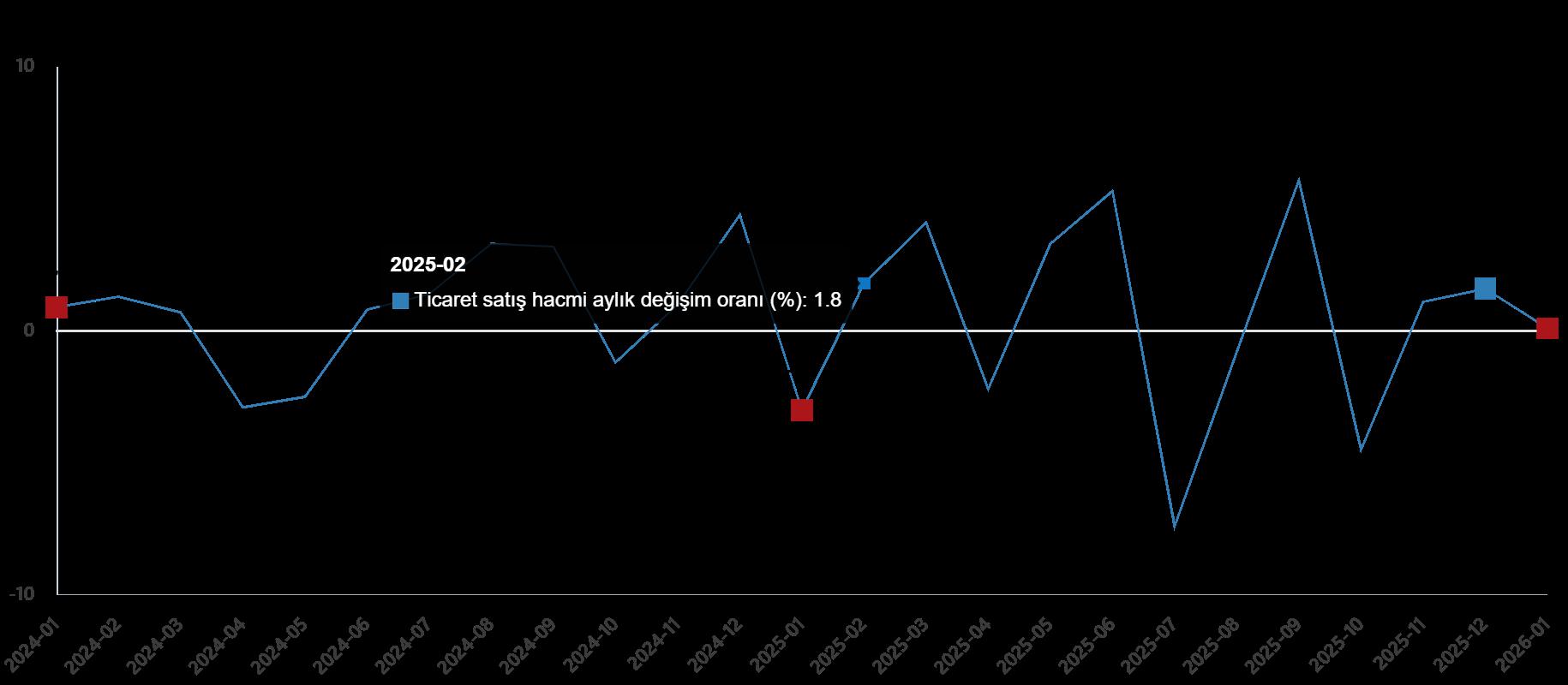 Ticaret satış hacmi aylık değişim oranı (%), Ocak 2026