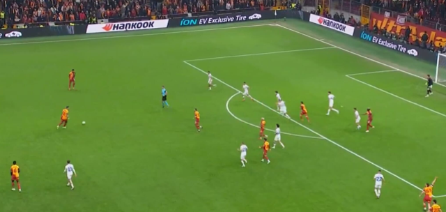 6. dakikada Davinson Sanchez ile 1-0 öne geçen sarı-kırmızılılar, 22. dakikada diğer stoperi Abdülkerim Bardakcı ile farkı 2’ye çıkardı. Ceza sahası dışında, çok uzaklarda topla buluşan Abdülkerim, tribünlerden gelen “vur” seslerini de arkasına alarak vuruşunu yaptı ve uzun süre hafızalardan silinmeyecek güzellikte bir gole imza attı.