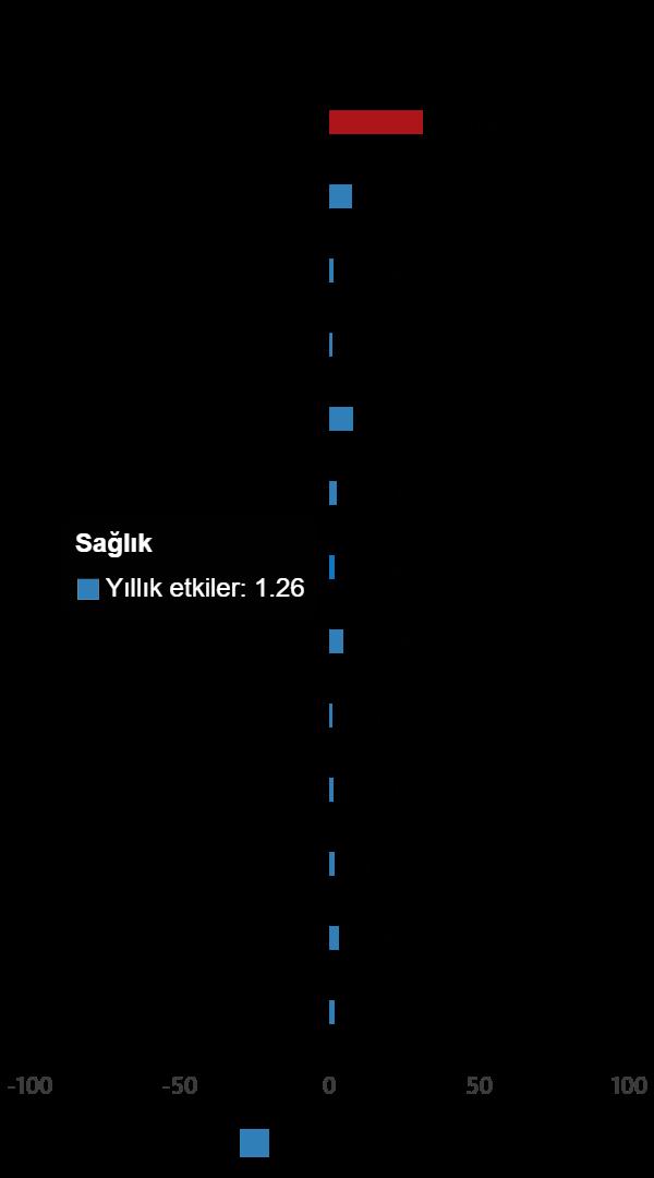 En yüksek tartıya sahip 3 ana harcama kümesinin yıllık değişimleri; besin ve alkolsüz içeceklerde %28,31 artış, ulaştırmada %28,44 artış ve konutta %49,45 artış olarak gerçekleşti. İlgili ana kümelerin yıllık değişime olan tesirleri ise besin ve alkolsüz içeceklerde %7,07, ulaştırmada %4,36 ve konutta %7,52 oldu.