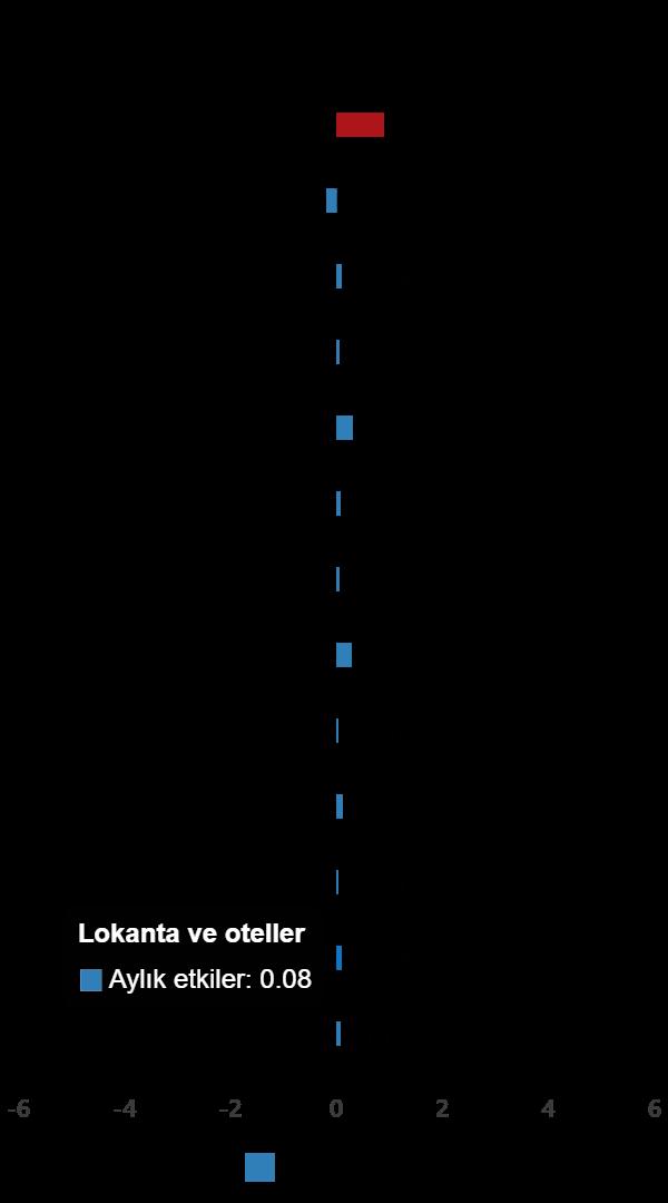 En yüksek tartıya sahip 3 ana harcama kümesinin yıllık değişimleri; besin ve alkolsüz içeceklerde %27,44 artış, ulaştırmada %29,23 artış ve konutta %49,92 artış olarak gerçekleşti. İlgili ana kümelerin yıllık değişime olan tesirleri ise besin ve alkolsüz içeceklerde %6,83, ulaştırmada %4,55 ve konutta %7,57 oldu.
