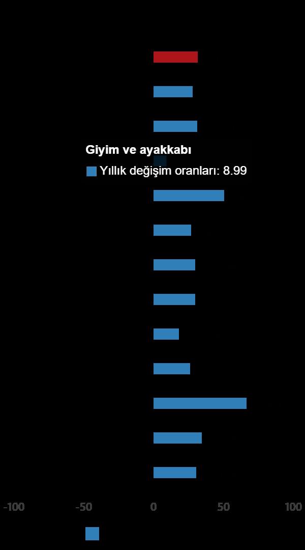 En yüksek tartıya sahip 3 ana harcama kümesinin yıllık değişimleri; besin ve alkolsüz içeceklerde %27,44 artış, ulaştırmada %29,23 artış ve konutta %49,92 artış olarak gerçekleşti. İlgili ana kümelerin yıllık değişime olan tesirleri ise besin ve alkolsüz içeceklerde %6,83, ulaştırmada %4,55 ve konutta %7,57 oldu.