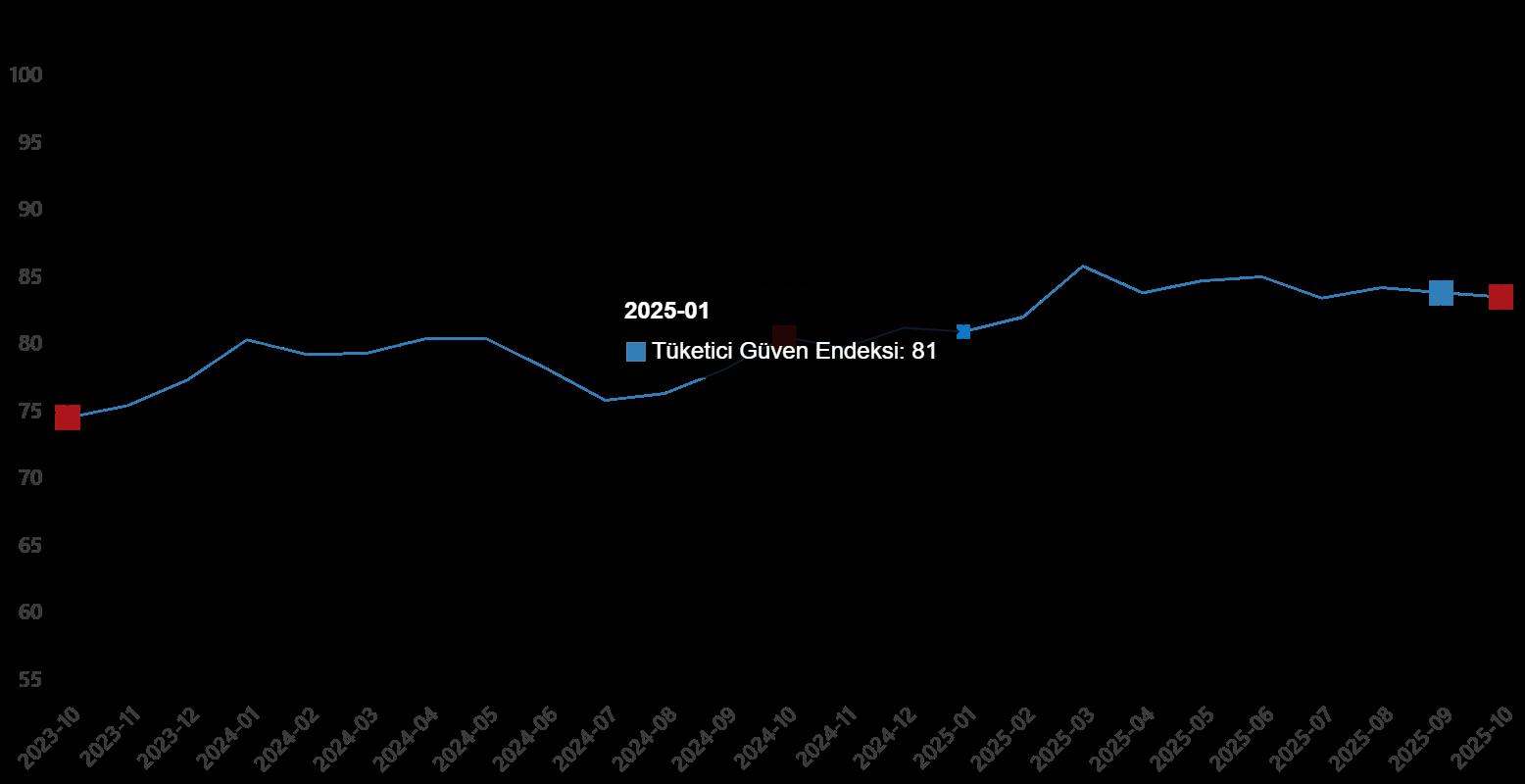 Türkiye İstatistik Kurumu ve Türkiye Cumhuriyet Merkez Bankası işbirliği ile yürütülen tüketici eğilim anketi sonuçlarından hesaplanan tüketici inanç endeksi, Eylül ayında 83,9 iken Ekim ayında %0,3 oranında azalarak 83,6 oldu.