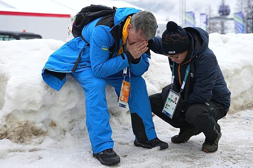 Mykhailo Heraskevych, the father and coach of Vladyslav, was caught on camera visibly distraught as he reacted to the news that his son had been disqualified from competing in the Milano-Cortina Games.