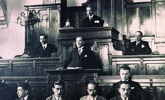 Efendiler, görüyorsunuz ki Cumhuriyet ilanına karar vermek için Ankara’da bulunan bütün arkadaşlarımı davet ederek onlarla görüşüp tartışmaya asla lüzum ve ihtiyaç görmedim. Çünkü, onların da aslında ve tabii olarak benim gibi düşündüklerinden şüphe etmiyordum. Halbuki o sırada Ankara’da bulunmayan bazı kişiler, yetkileri olmadığı halde, kendilerine haber verilmeden, düşünce ve rızaları alınmadan cumhuriyetin ilan edilmiş olmasını bize gücenme ve bizden ayrılma sebebi saydılar.”