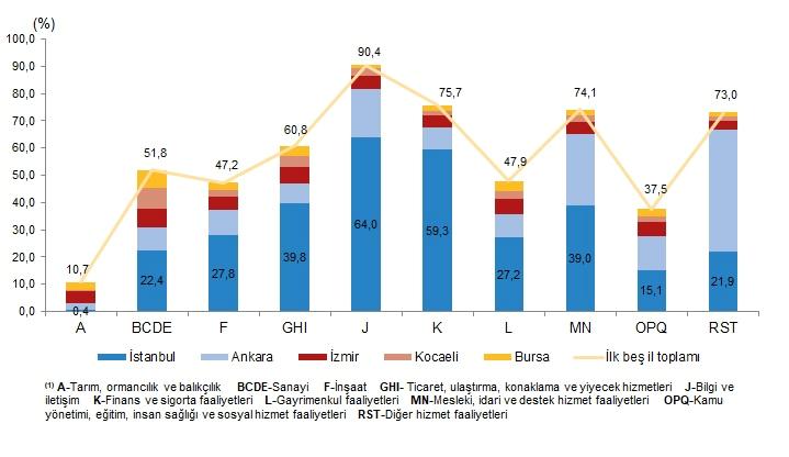 İstanbul, “tarım, ormancılık, balıkçılık” ve “diğer hizmet faaliyetleri” hariç, tüm faaliyetlerde en yüksek hissesi aldı