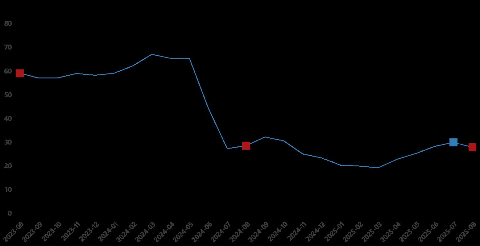 YD-ÜFE yıllık değişim oranları (%), Ağustos 2025