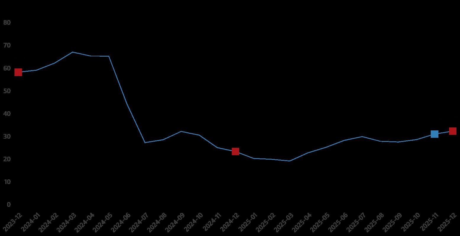YD-ÜFE yıllık değişim oranları (%), Aralık 2025